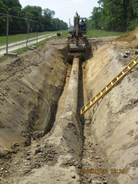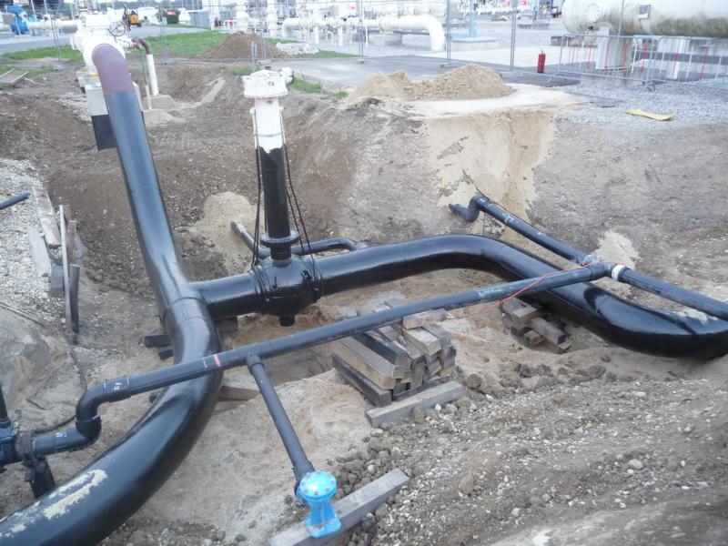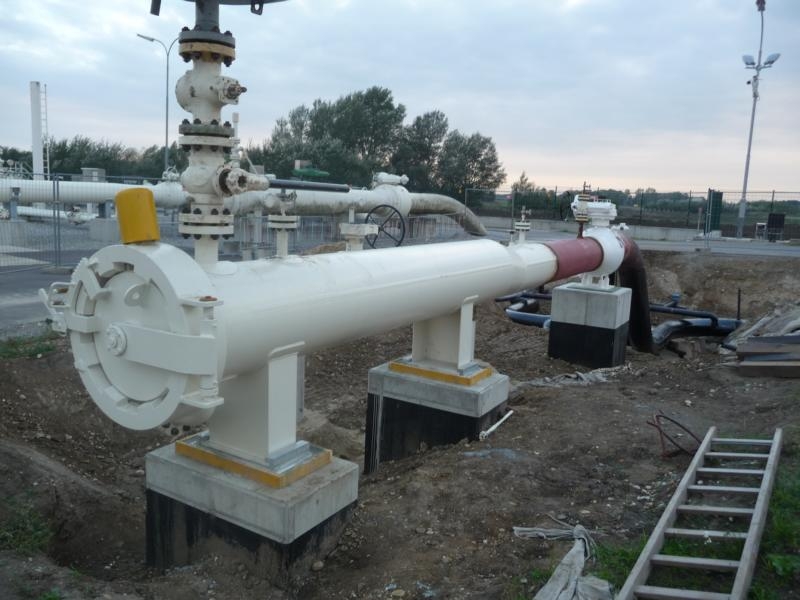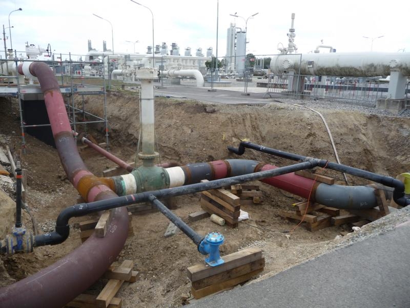 Sanierung von 10 Fehlerstellen vom Marchdüker bis Baumgarten, erneuern eines Dükers, Installation einer fixen Molchschleuse in der Verdichterstation Baumgarten und Erneuerung von ca. 40m Stationsverrohrung.