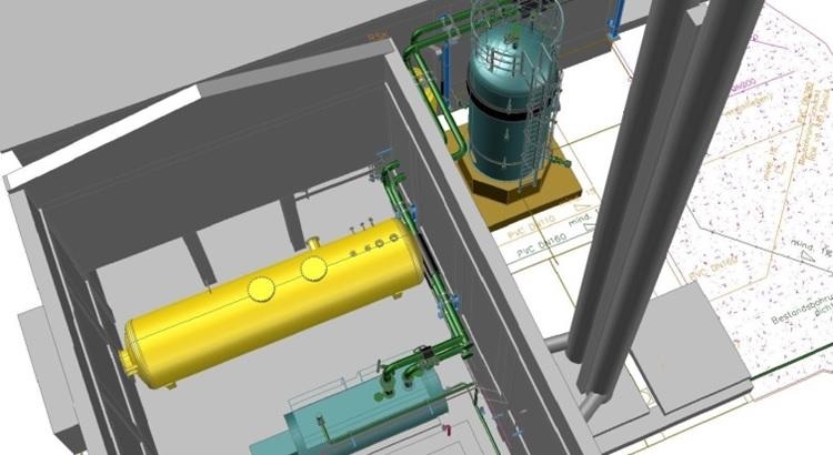 Auskopplung von Wärme aus einem Zwischenkühler eines Verdichters in einer Gasstation. Installation von neuen Heizkesseln zur Wärmeversorgung.